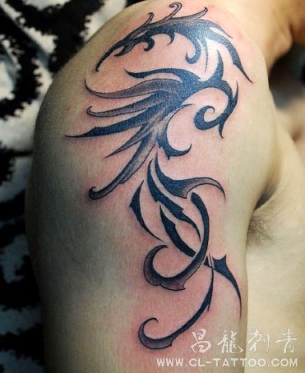 手臂抽象图腾凤凰_男士小图_凤凰纹身图案大全_纹身图吧