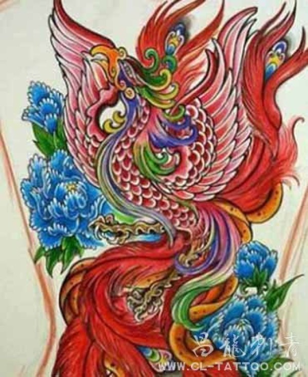 女孩子满背彩色凤凰纹身图案_凤凰纹身图案大全_纹身图吧