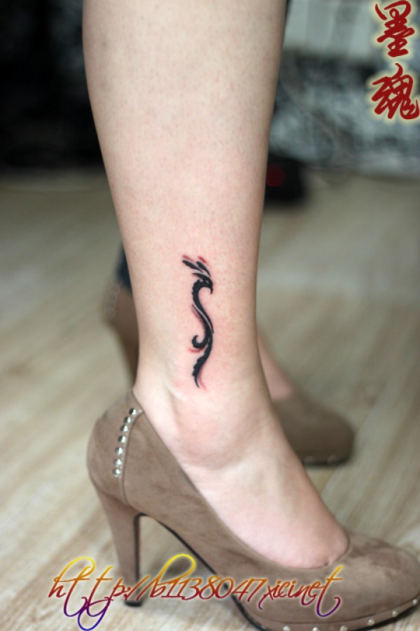 女孩子颈部小巧的图腾凤凰纹身图案_凤凰纹身图案大全_纹身图吧