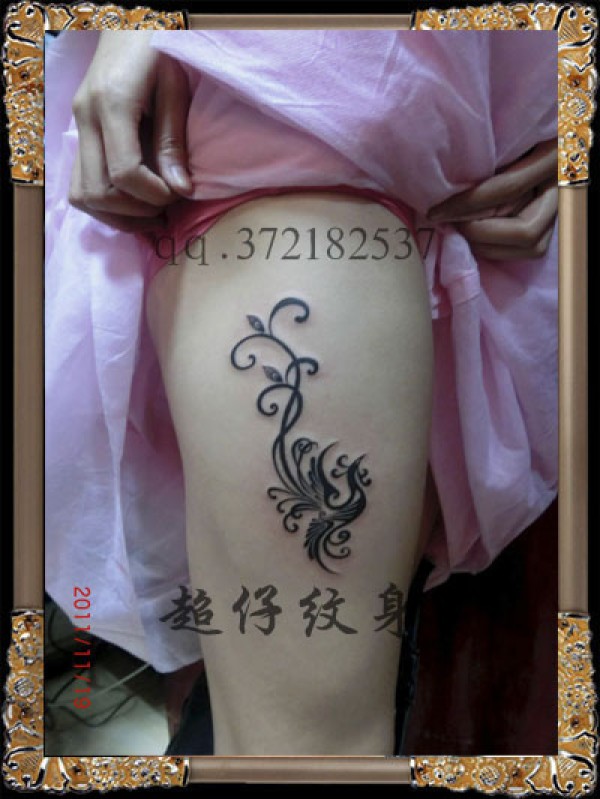 腿部精美好看的图腾凤凰纹身图案_凤凰纹身图案大全_纹身图吧
