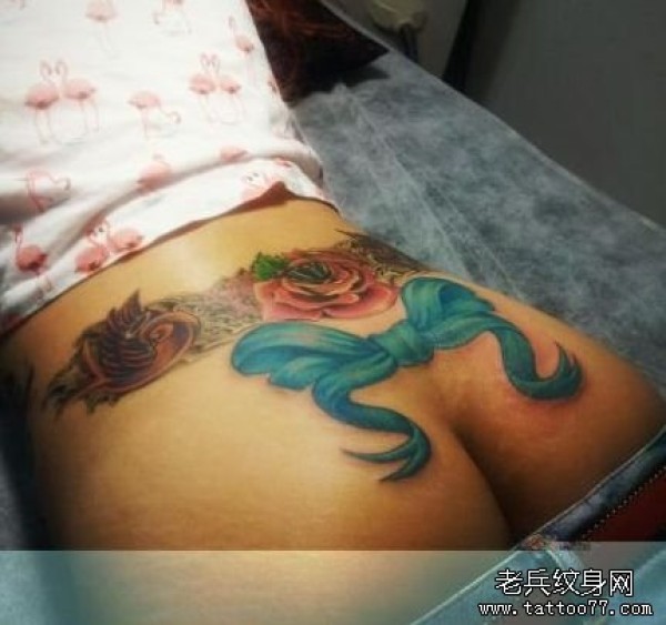 美女臀部好看的彩色蝴蝶结纹身图案_蝴蝶纹身图案大全_纹身图吧