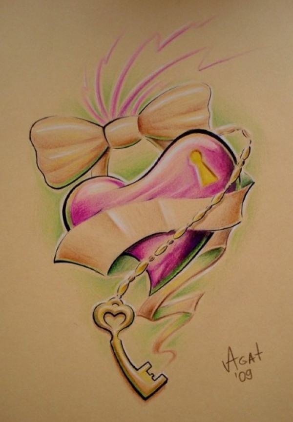 手臂彩色钥匙蝴蝶结纹身_蝴蝶纹身图案大全_纹身图吧