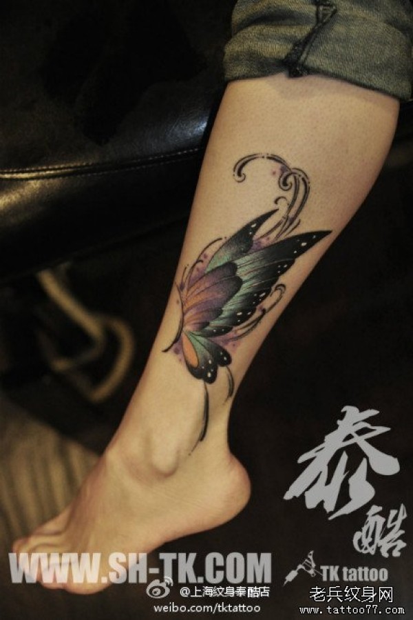 腿部蝴蝶纹身_蝴蝶纹身图案大全_纹身图吧