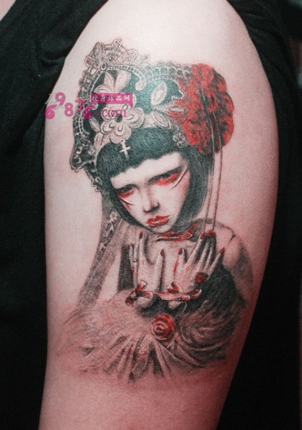 复古卡通红唇美女手臂纹身_卡通纹身图案大全_纹身图吧