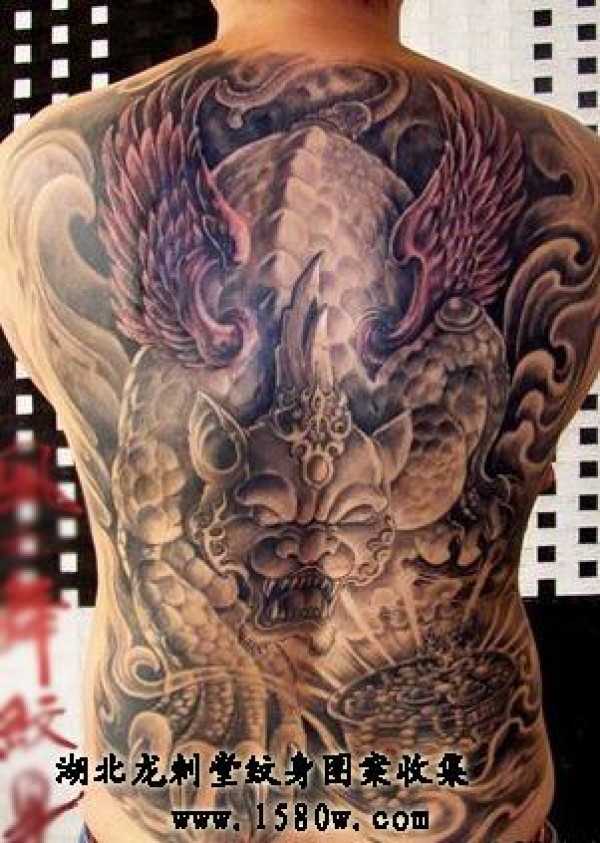 满背貔貅纹身神兽纹身_貔貅纹身图案大全_纹身图吧