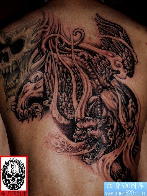 男人背部貔貅图腾过程图案_貔貅纹身图案大全_纹身图吧