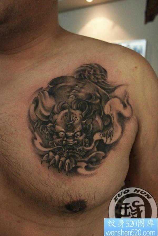 男生前胸潮流很帅的貔貅纹身图片_貔貅纹身图案大全_纹身图吧