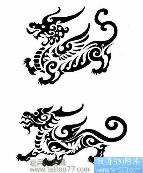 龙纹身手稿_一组老传统黑灰龙手稿纹身图案