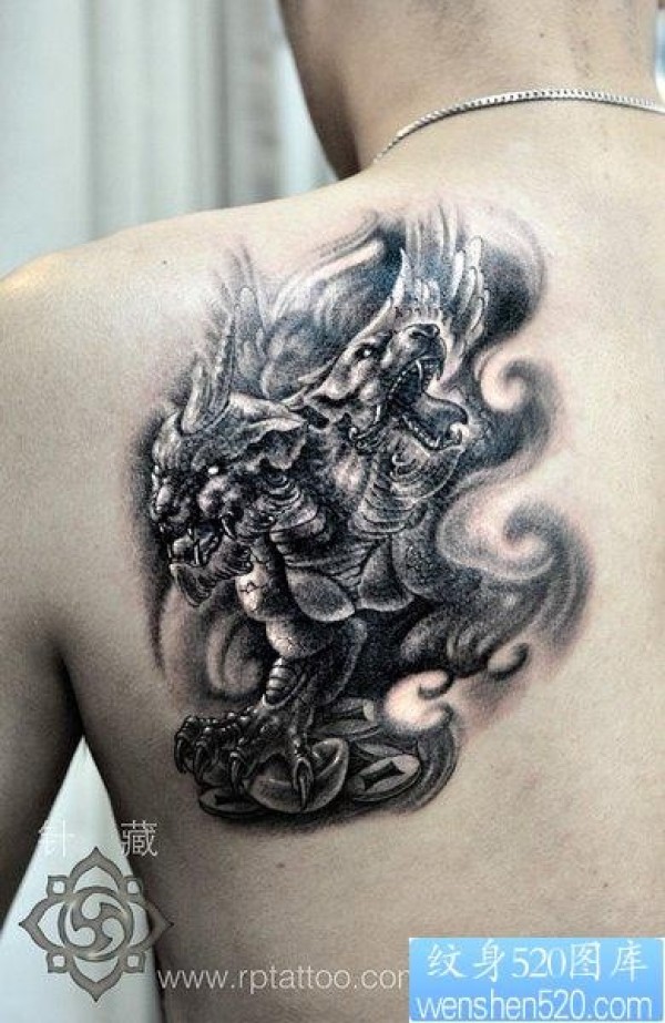 男生肩背招财神兽貔貅纹身图片_貔貅纹身图案大全_纹身图吧