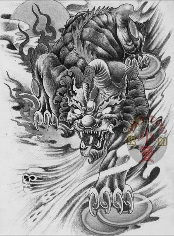 一款霸气的貔貅纹身手稿_貔貅纹身图案大全_纹身图吧