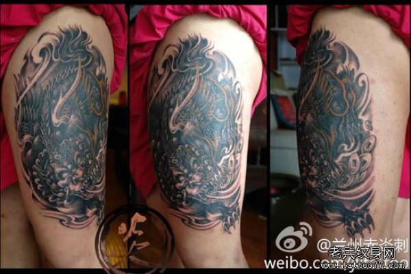 男人腿部经典很酷的招财貔貅纹身图案_貔貅纹身图案大全_纹身图吧
