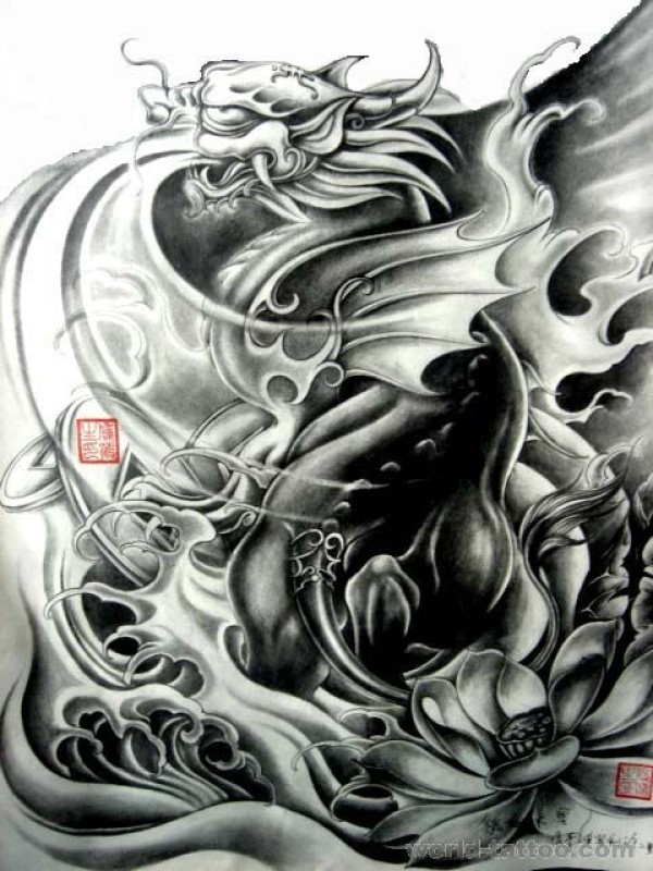 龙纹身手稿_一组老传统黑灰龙手稿纹身图案