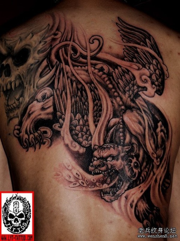 背部神兽貔貅纹身图案纹身图片_貔貅纹身图案大全_纹身图吧