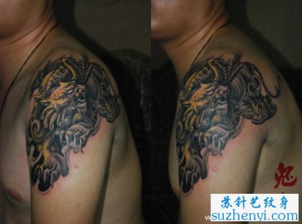 肩部神兽貔貅纹身图案_貔貅纹身图案大全_纹身图吧