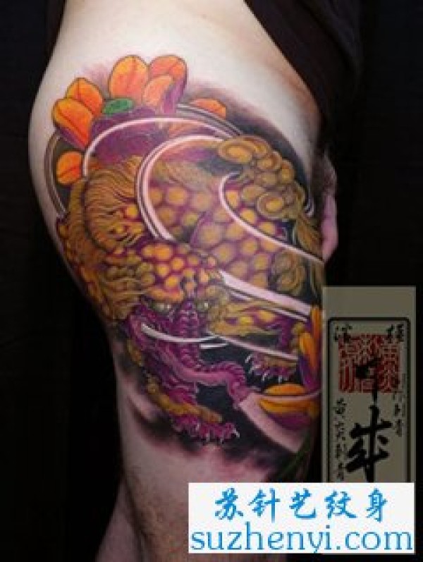 男性腿部重彩貔貅纹身图案_貔貅纹身图案大全_纹身图吧
