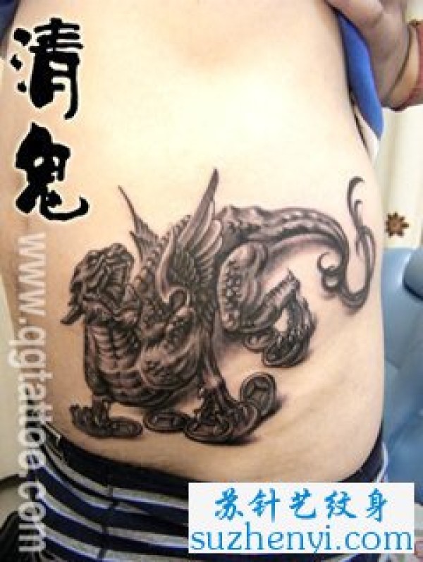 后腰素描貔貅纹身图案_貔貅纹身图案大全_纹身图吧