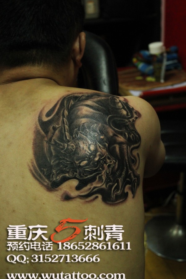 男人背部貔貅图腾过程图案_貔貅纹身图案大全_纹身图吧