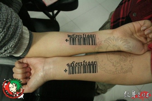 情侣手臂个性条形码刺青_情侣纹身图案大全_纹身图吧