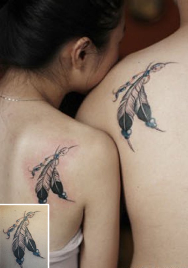 情侣肩背时尚羽毛纹身_情侣纹身图案大全_纹身图吧