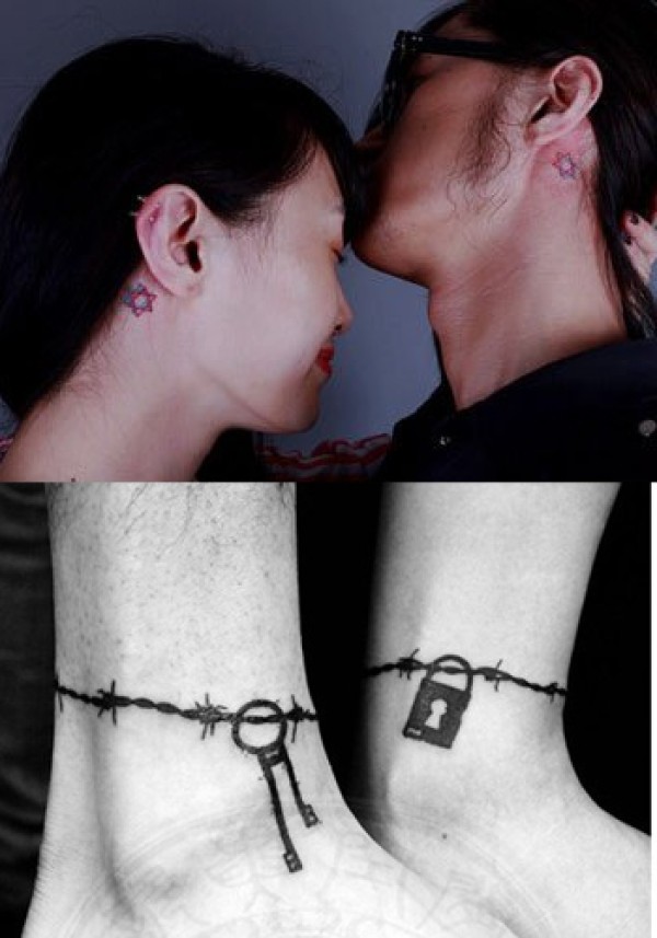 腿部情侣钥匙爱心锁纹身_情侣纹身图案大全_纹身图吧