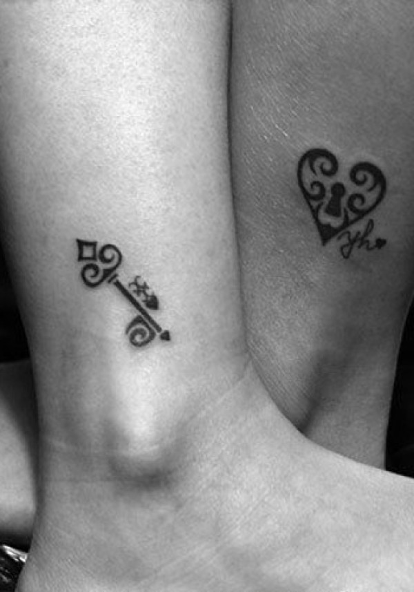 腿部情侣钥匙爱心锁纹身_情侣纹身图案大全_纹身图吧