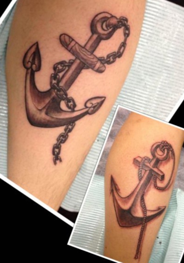 腿部情侣船锚纹身_情侣纹身图案大全_纹身图吧