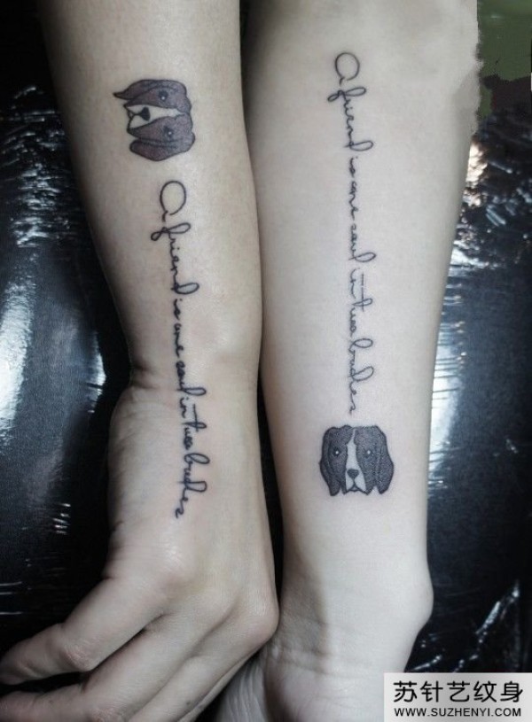 情侣可爱小狗头像英文字体纹身_情侣纹身图案大全_纹身图吧