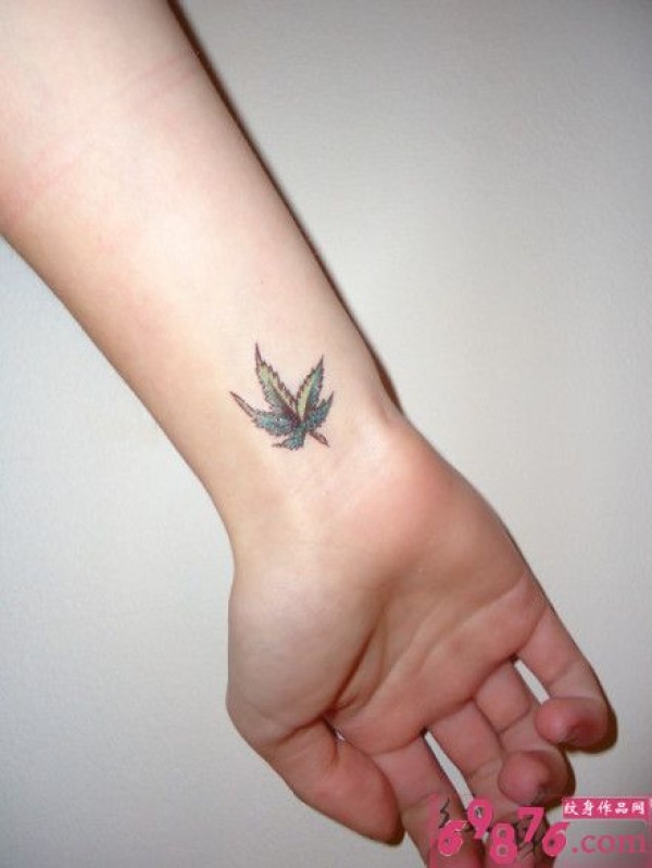 清新小树叶手腕时尚纹身_手臂纹身图案大全_纹身图吧