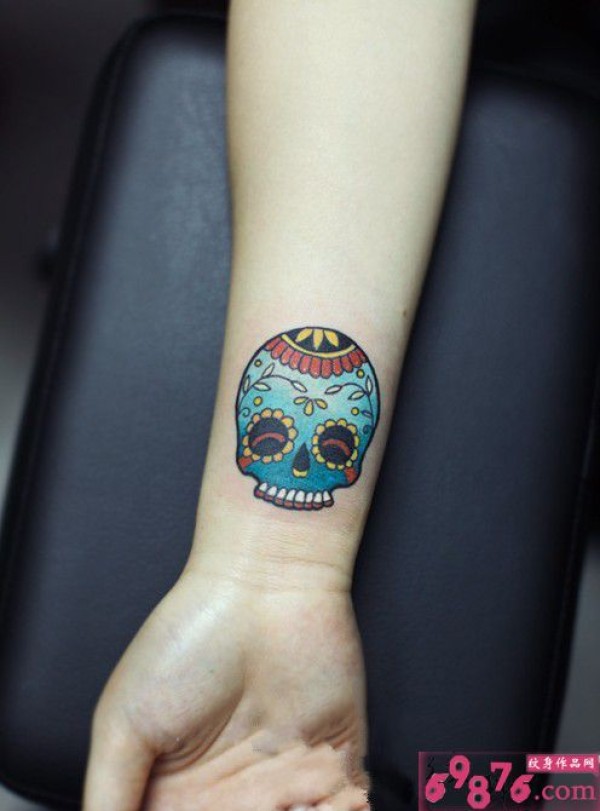 炫彩小骷髅手腕时尚纹身_手臂纹身图案大全_纹身图吧