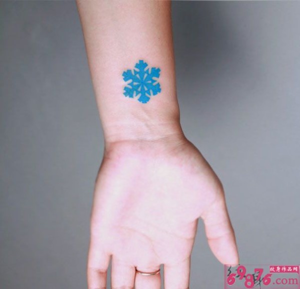 清新蓝色雪花手腕纹身_手臂纹身图案大全_纹身图吧