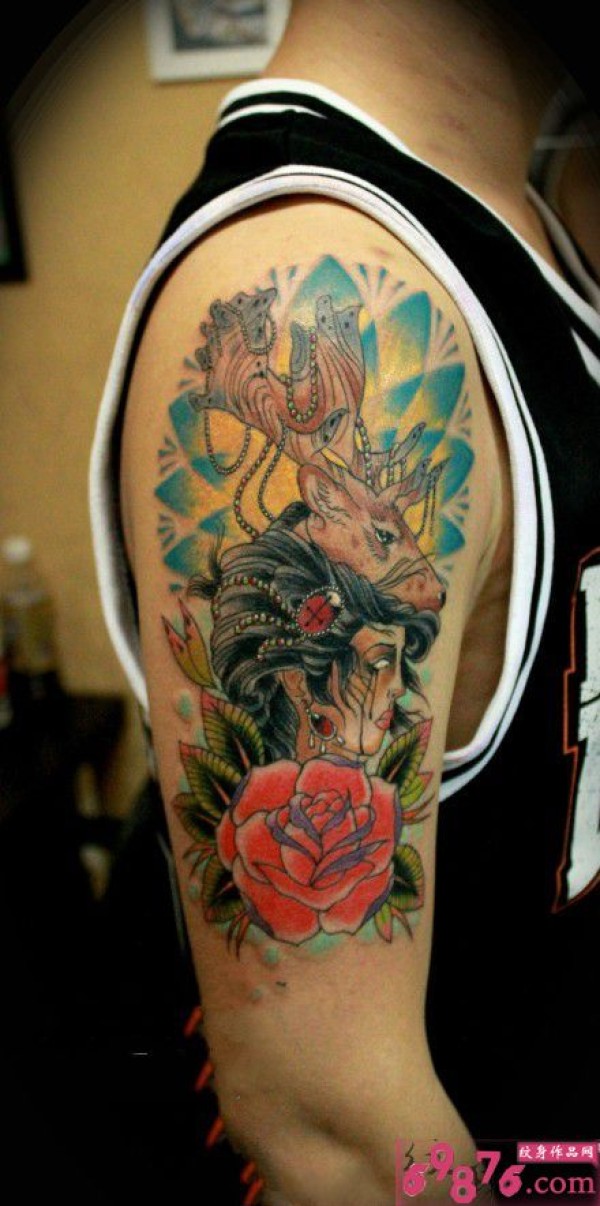 另类麋鹿与美女手臂纹身_手臂纹身图案大全_纹身图吧