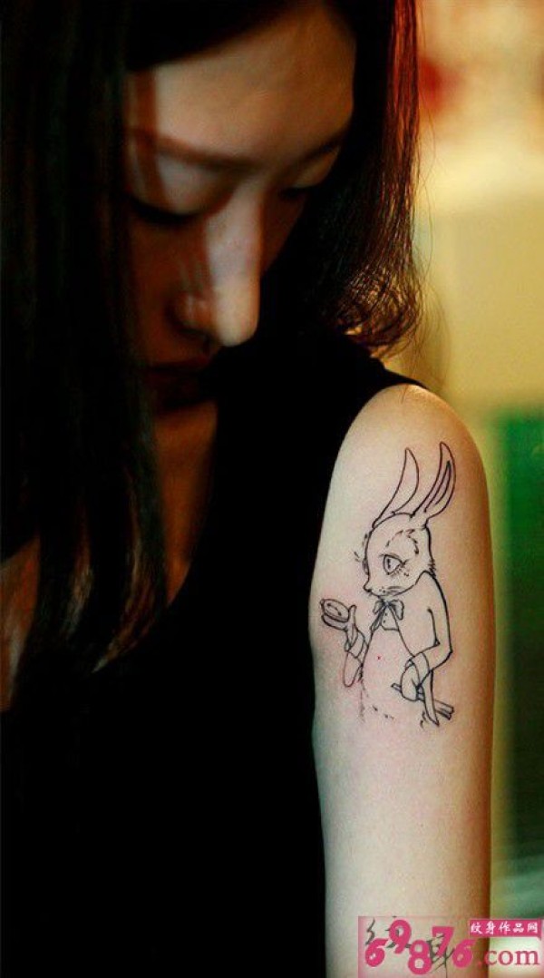 线条设计感兔子纹身_手臂纹身图案大全_纹身图吧