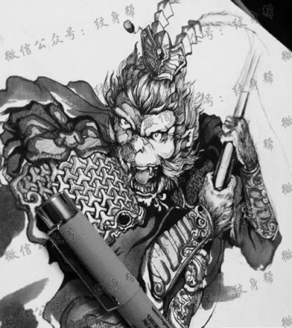 半甲唐狮手稿 传统的9款唐狮主题半甲纹身手稿图片