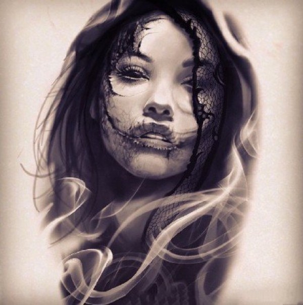 29张适合大臂的欧美写实人像黑灰纹身手稿图案
