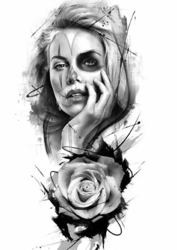 29张适合大臂的欧美写实人像黑灰纹身手稿图案