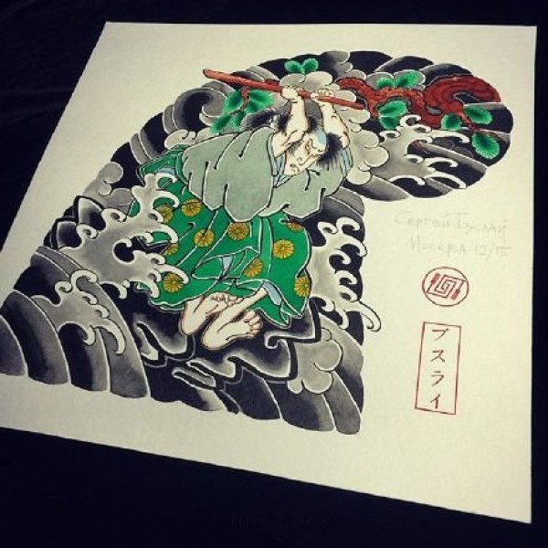 一组日式老传统人物的纹身手稿图片赏析
