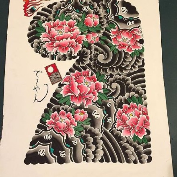 日式大板雾满背纹身手稿