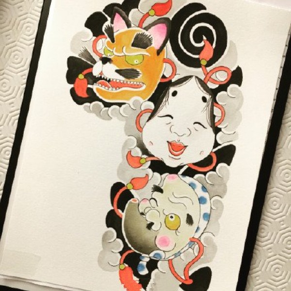 半甲唐狮手稿 传统的9款唐狮主题半甲纹身手稿图片