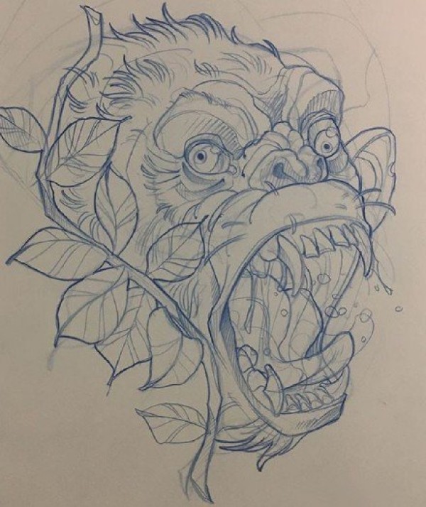 newschool线稿--21张不错的newschool创意动物纹身手稿图案
