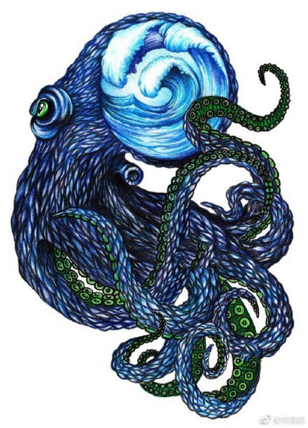 29张八爪鱼章鱼纹身手稿图案欣赏