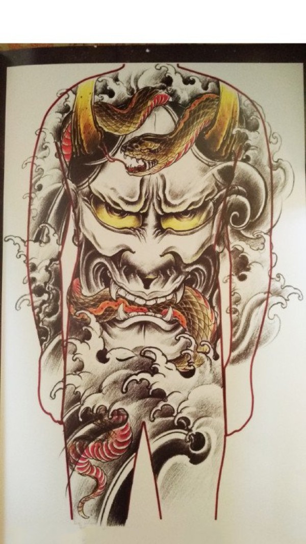 一组满背大气九龙拉棺纹身图案作品和手稿