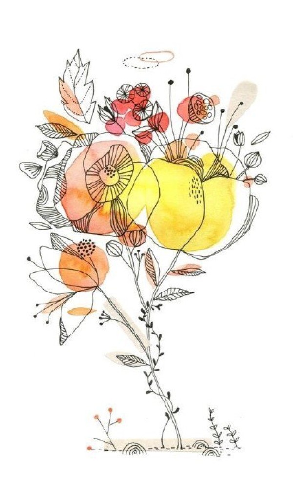 水彩花卉手稿:36张水彩风格的花朵花卉纹身手稿图案