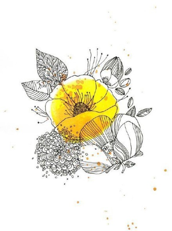水彩花卉手稿:36张水彩风格的花朵花卉纹身手稿图案