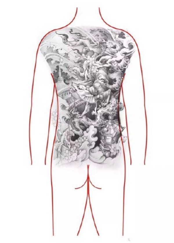 日式大板雾满背纹身手稿