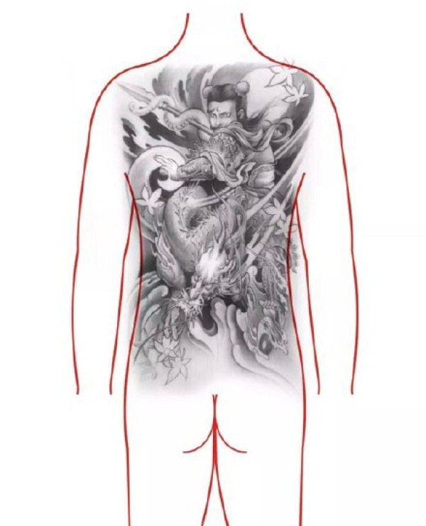 一组满背大气九龙拉棺纹身图案作品和手稿