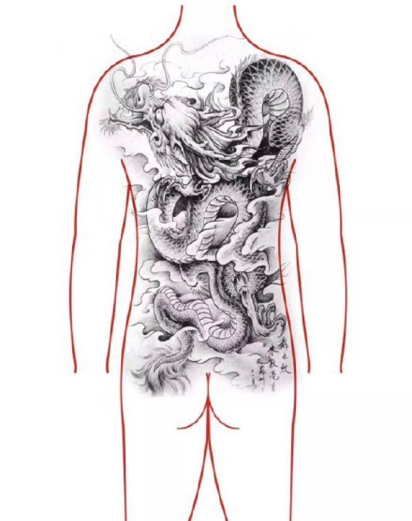 一组满背大气九龙拉棺纹身图案作品和手稿