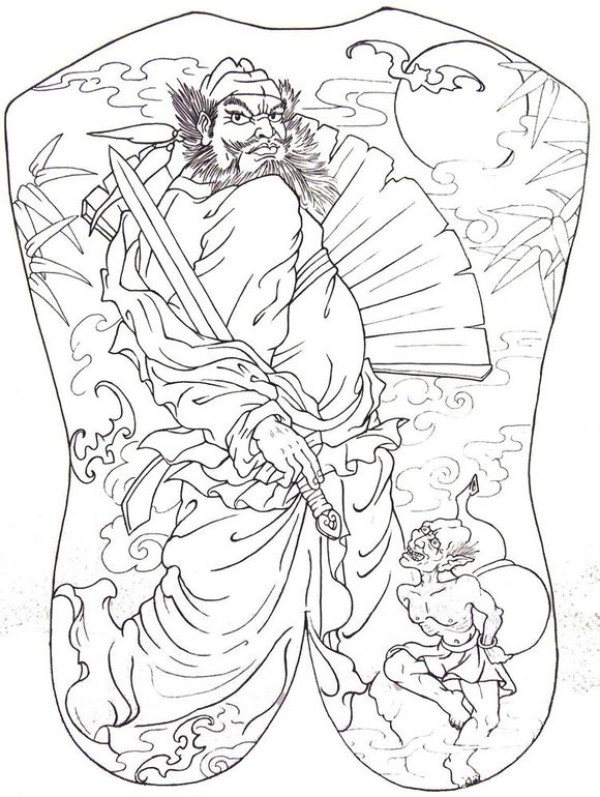 一组满背大气九龙拉棺纹身图案作品和手稿