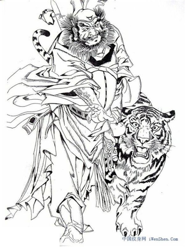 半甲唐狮手稿 传统的9款唐狮主题半甲纹身手稿图片