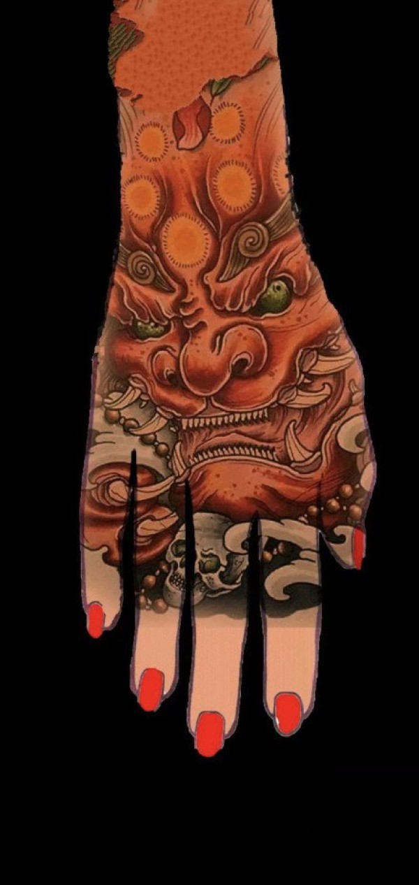 半甲唐狮手稿 传统的9款唐狮主题半甲纹身手稿图片