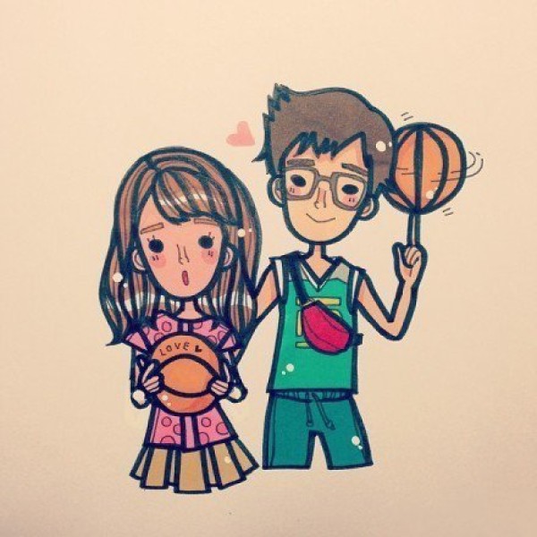 一组小清新的情侣卡通头像纹身素材